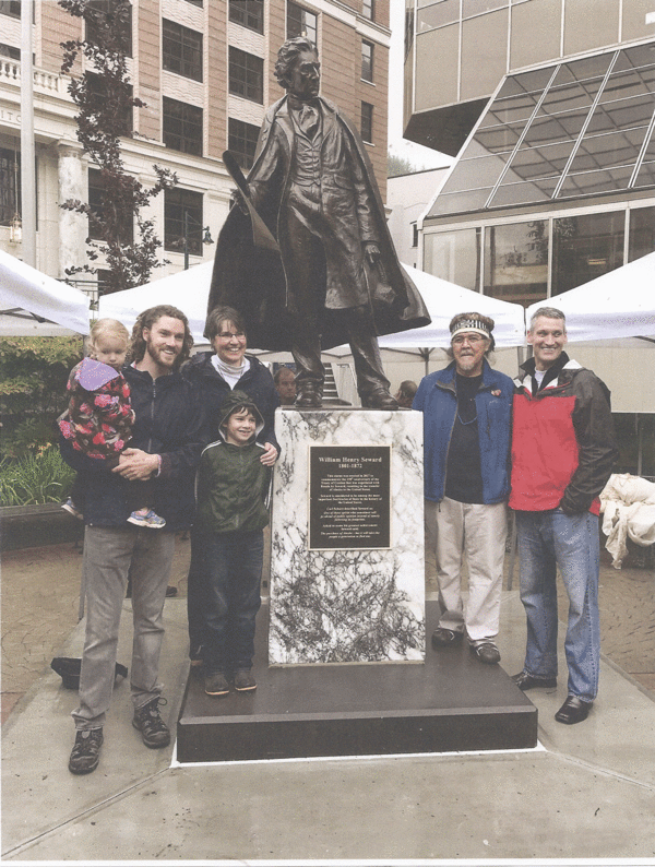 Seward's Descendants Attend the Unveiling of their Famous Ancestor’s Statue July 3rd, 2017 saw the unveiling of a life size statue of William Henry Seward in Alaska’s capital city Juneau. Painter/sculptor David Rubin of Ketchikan and his sister Judy Rubin in Boston created the impressive bronze of the Secretary of State, who secured the territory then known as Russian America by treaty in 1867, making 2017 the Sesquicentennial (150th) Anniversary of modern day Alaska. Installed on a four-foot block of Tokeen marble and a concrete pad, Seward towers eleven feet in the air.